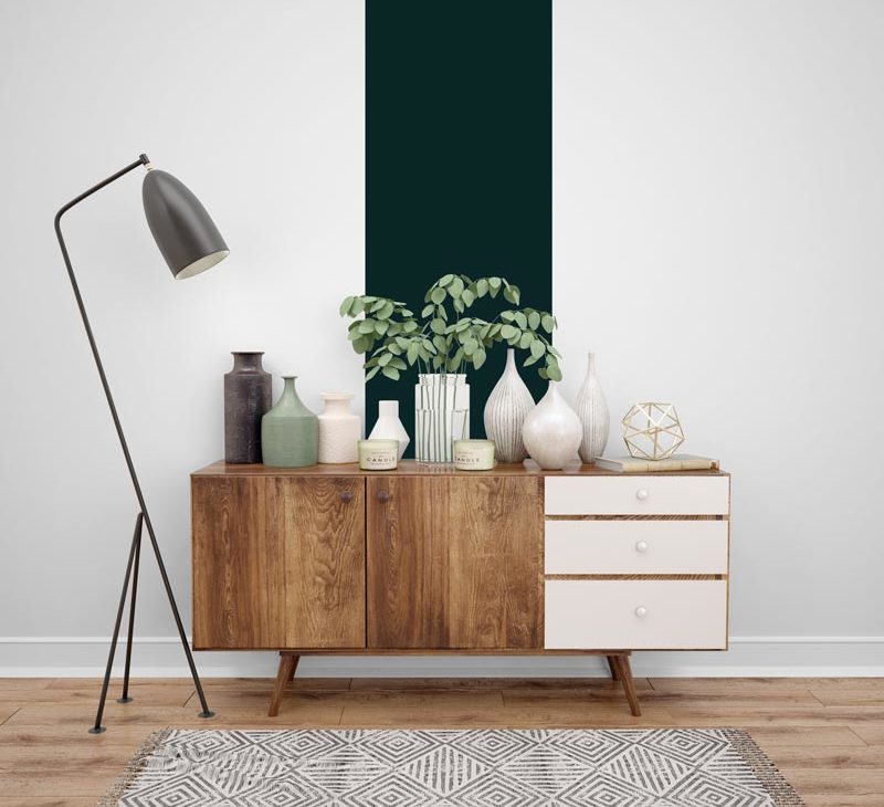 Réhausser vos meubles en plaçant un ou deux lés de papier peint derrière ceux-ci, afin de faire un écrin à une console, une commode, un bureau, des tables de chevet, un canapé.