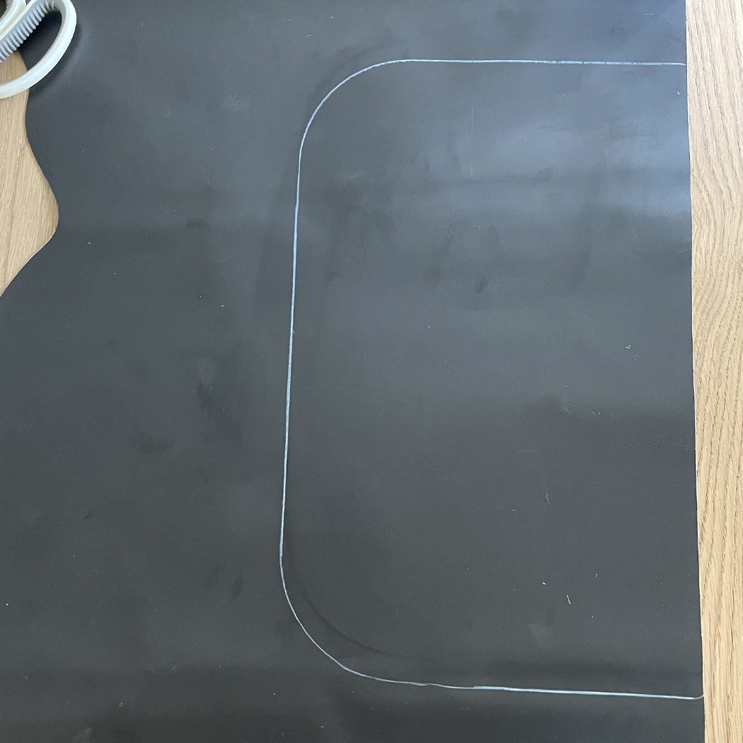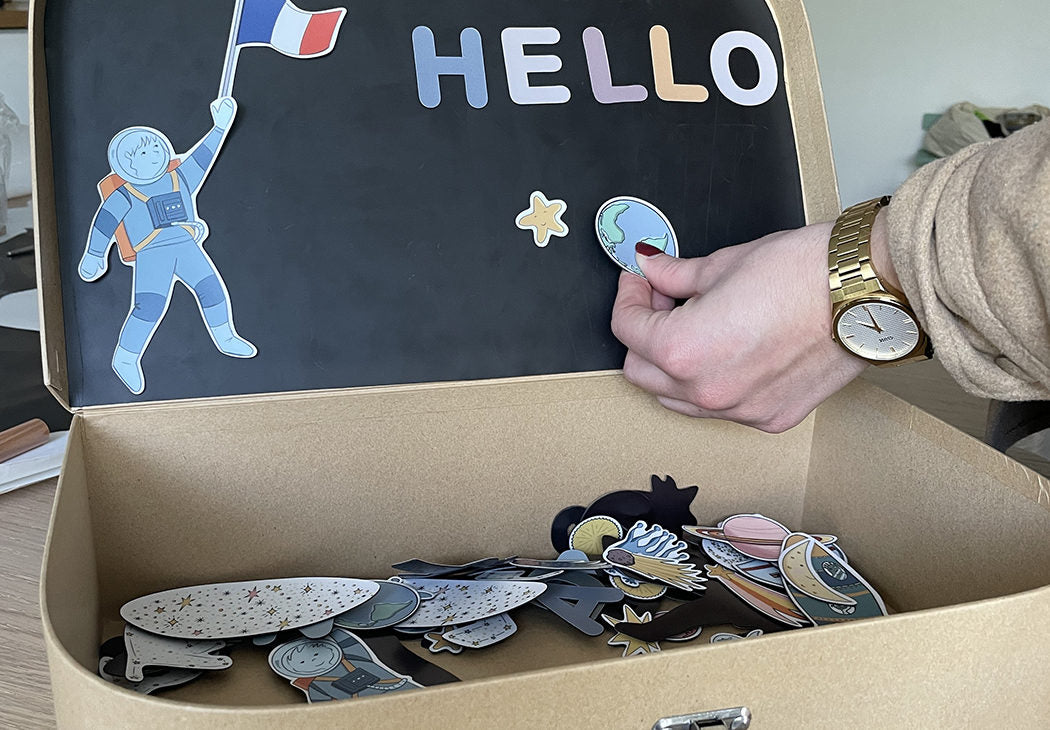 À l’aide d’un stylo et d’une paire de ciseaux, prenez les mesures de la valisette puis découpez le patron. Si le papier peint magnétique dépasse un peu, recoupez-le de quelques millimètres.