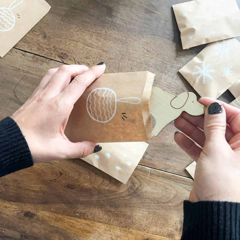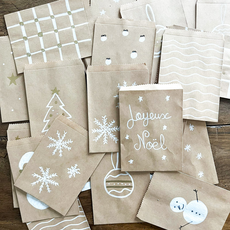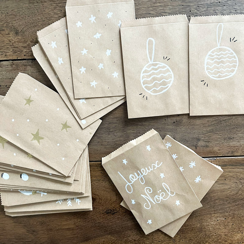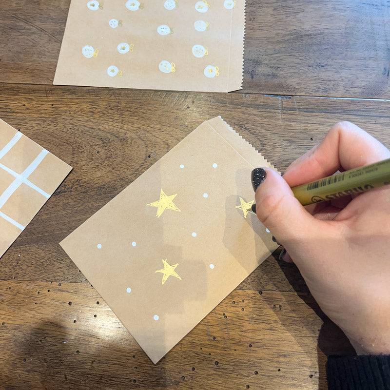Lassen Sie Ihrer Kreativität freien Lauf, indem Sie jeden Beutel dekorieren. Verwenden Sie den gold-weißen Marker, um Weihnachtsmotive, funkelnde Sterne oder sogar hübsche Worte hinzuzufügen. Verwandeln Sie jeden Beutel in ein kleines Kunstwerk, das die Weihnachtsstimmung verkörpert.