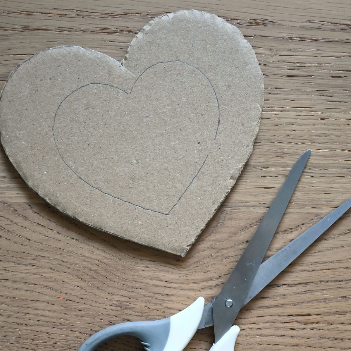 Vous pouvez dessiner la forme directement sur le carton. Pour ne garder que le contour, dessinez 2 fois la même forme à 1 ou 2 cm d’écart.