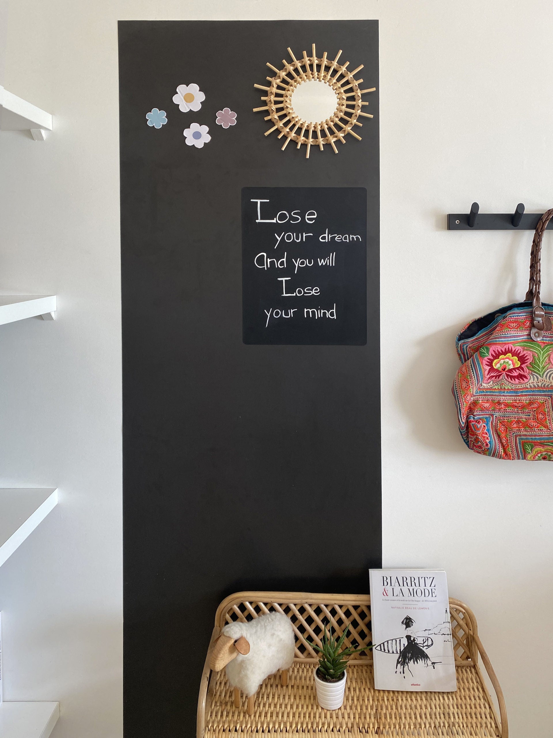 Positionner vos éléments selon vos envies ! Vous pouvez également utiliser des petits aimants ou des formes aimantées pour fixer vos cartes, photos ou affiches sur votre papier peint magnétique.