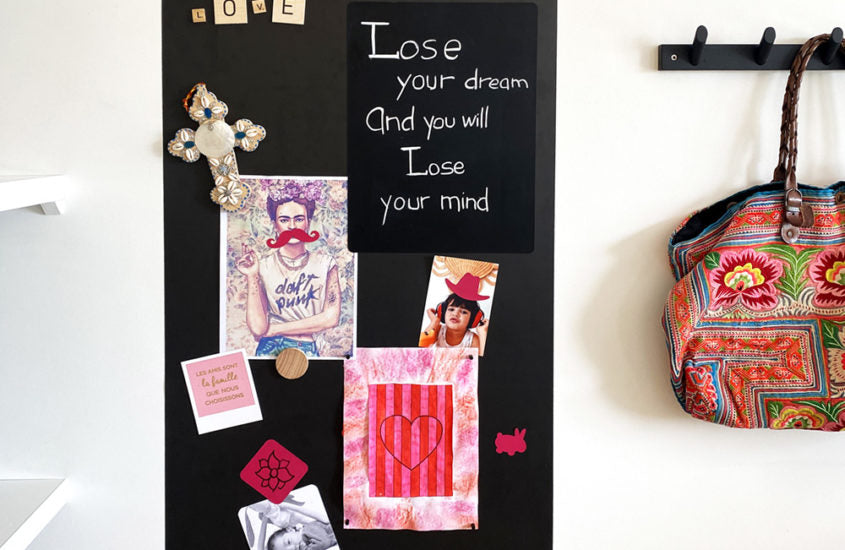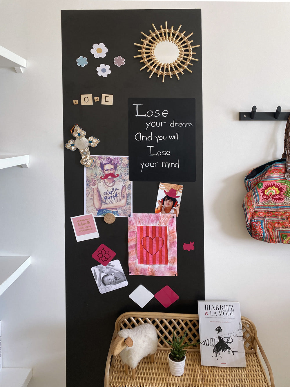Le petit plus : vous pourrez changer l’ambiance de votre moodboard au gré de vos envies sans abîmer votre mur.