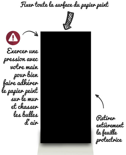 Il suffit de retirer la feuille protectrice et de coller votre lé de papier peint directement sur votre mur. Afin d’éviter les bulles d’air, vous pouvez utiliser une spatule à maroufler.