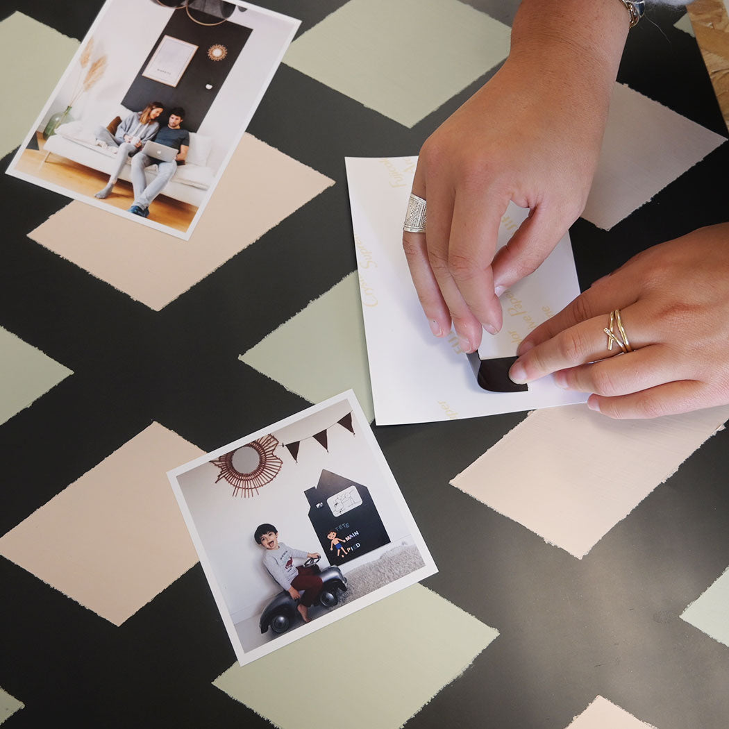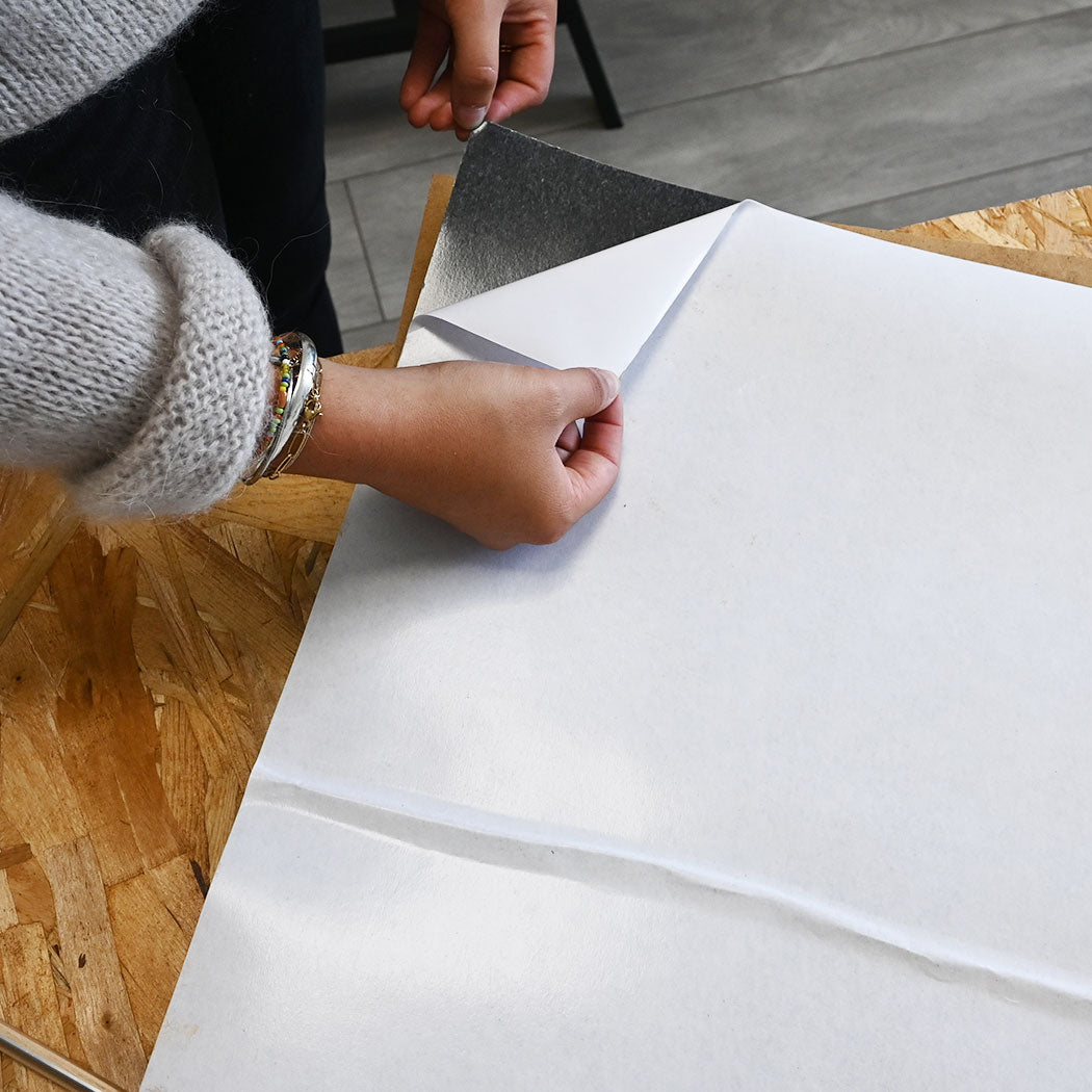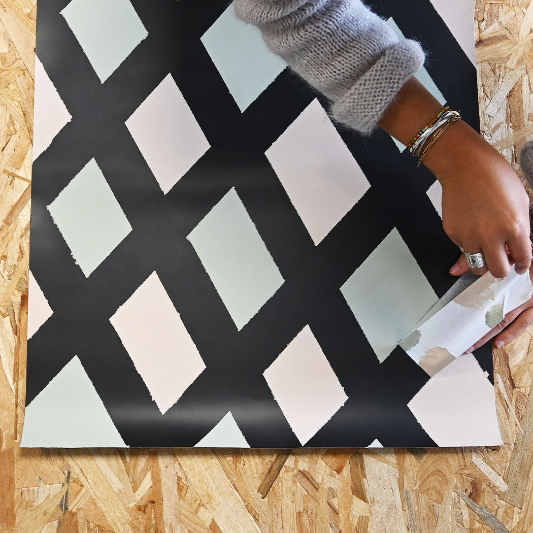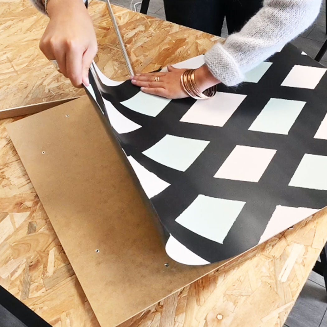 Pour le coller, c’est tout simple, il suffit d’enlever la pellicule protectrice de l’adhésif et de coller le papier peint sur le cadre.