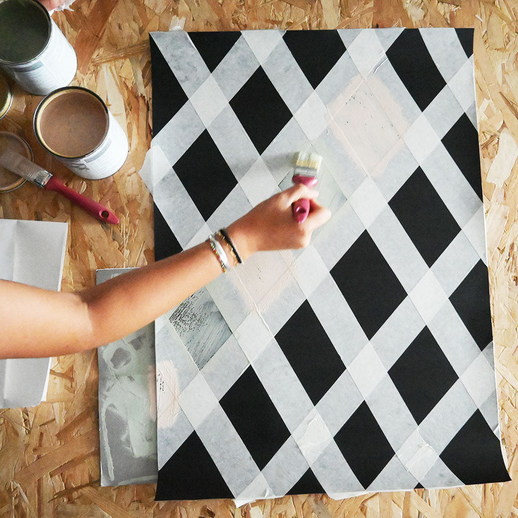 Mettre du scotch sur le papier peint magnétique en forme de losange ou de la forme de votre choix.