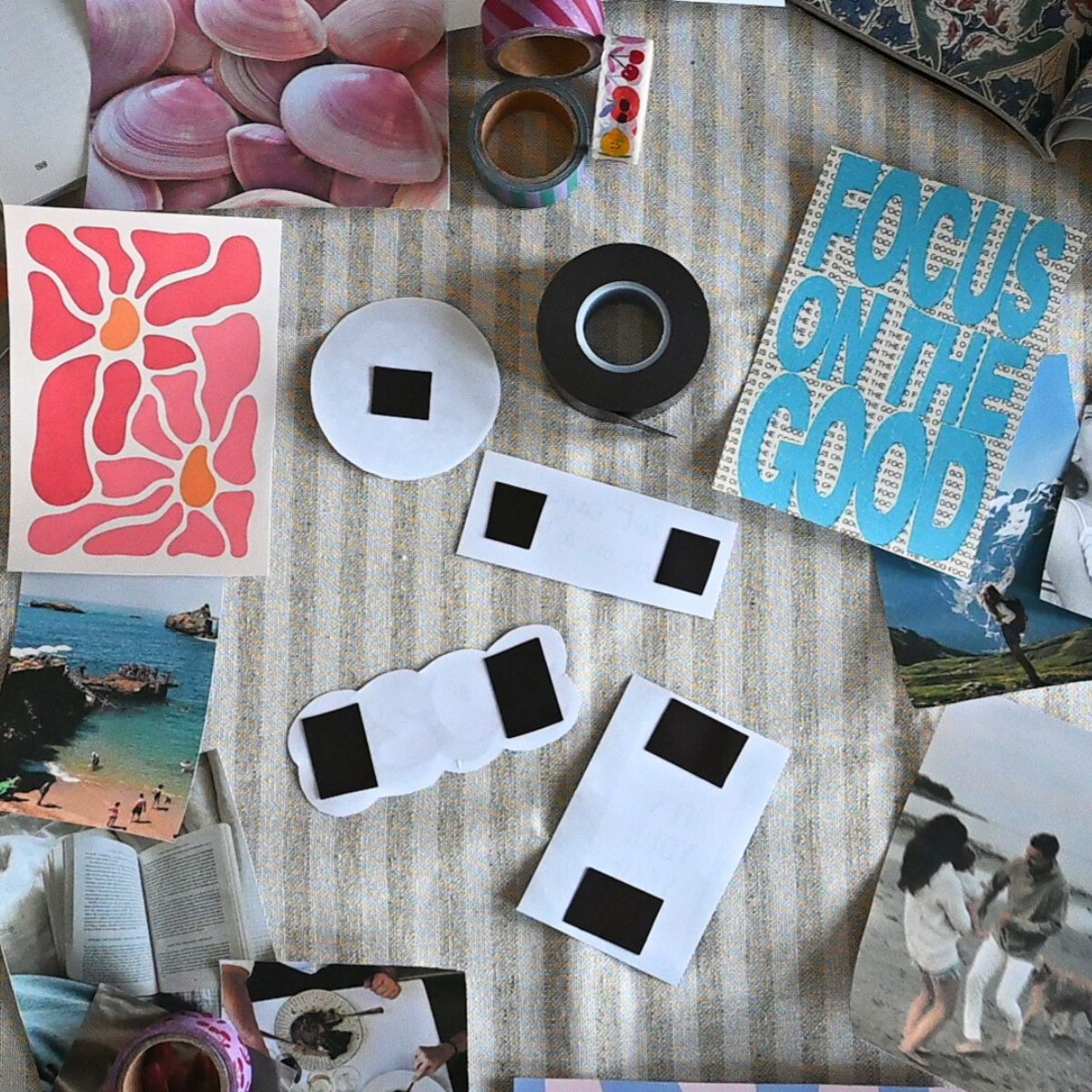 Une fois les formes totalement sèches, munissez-vous des bandes adhésives aimantées. Découpez-en de petits morceaux puis collez-les derrière chaque forme. Vous avez désormais de jolis magnets à utiliser sur le support magnétique de votre choix !
