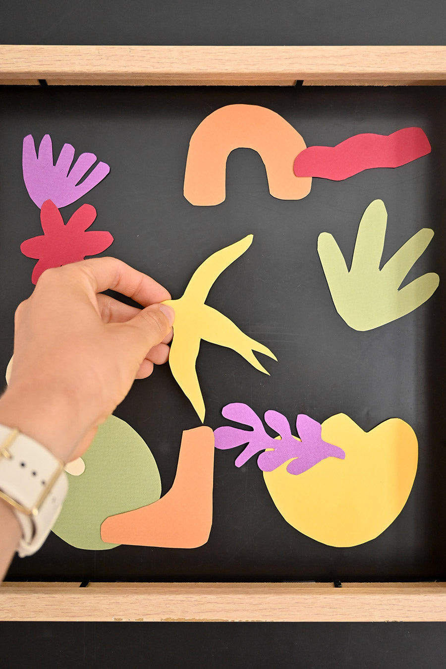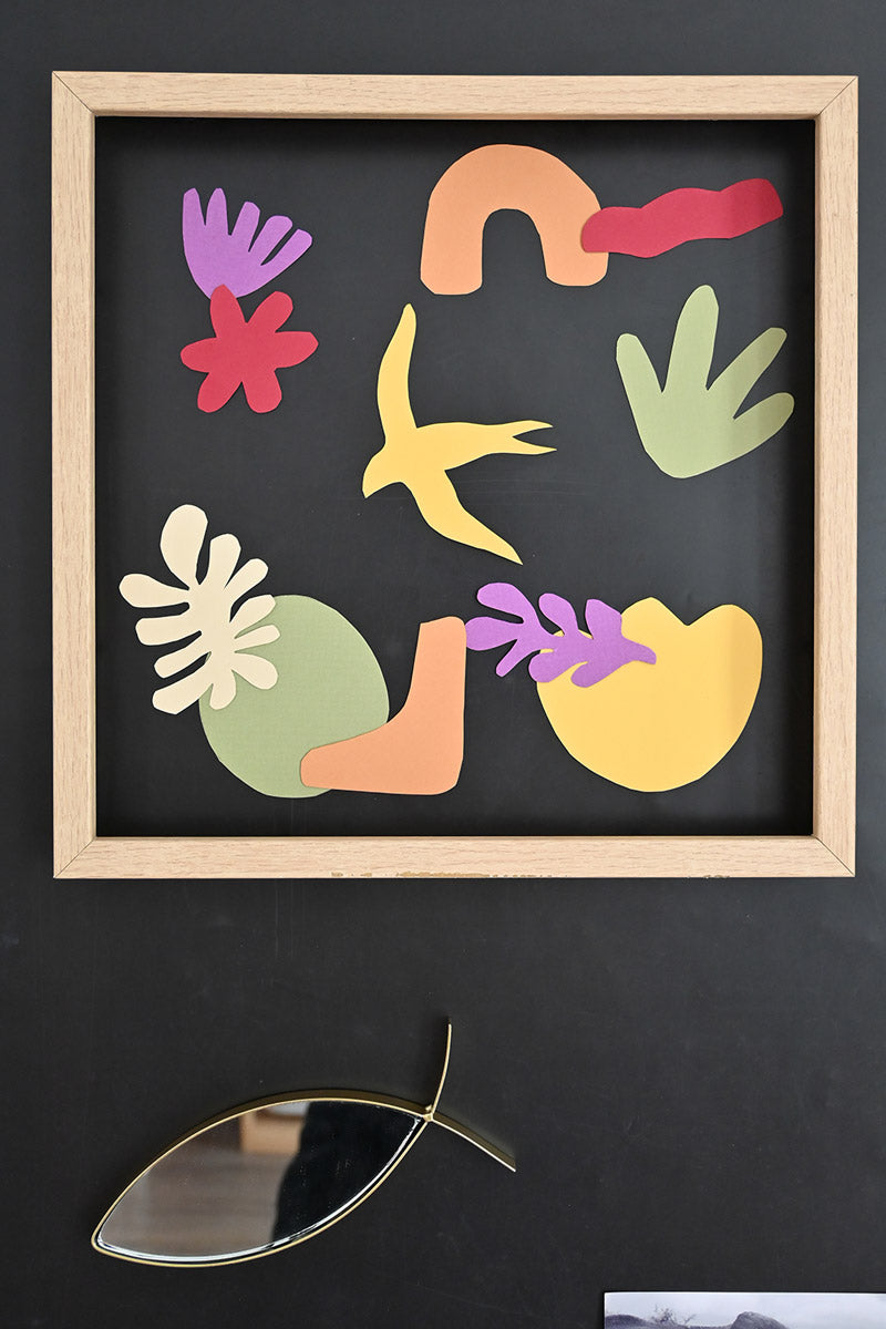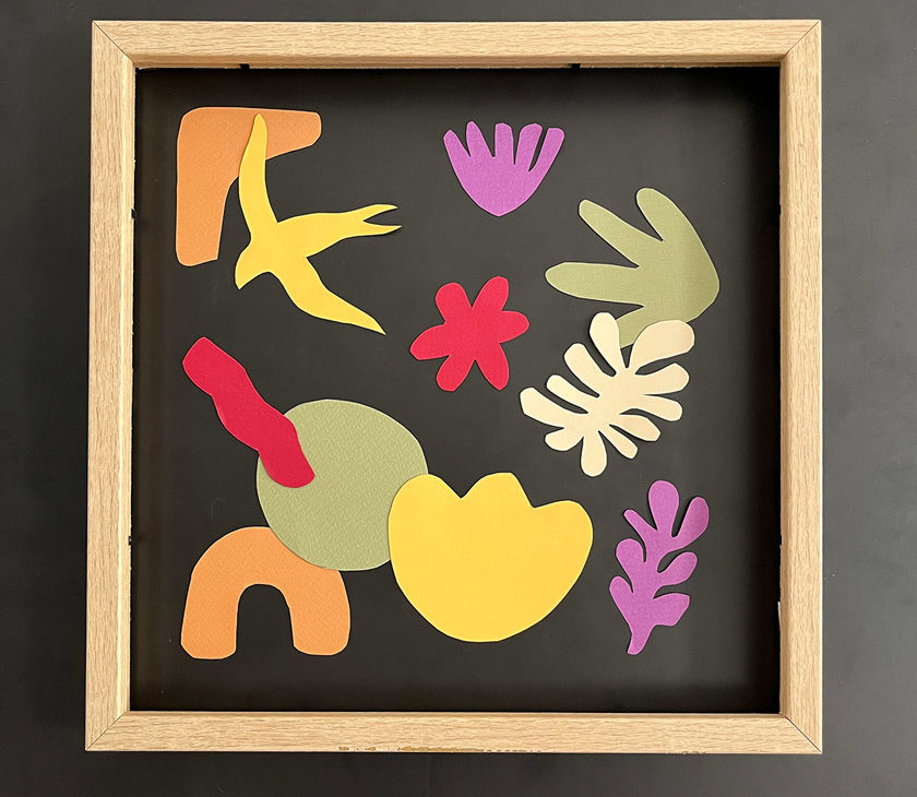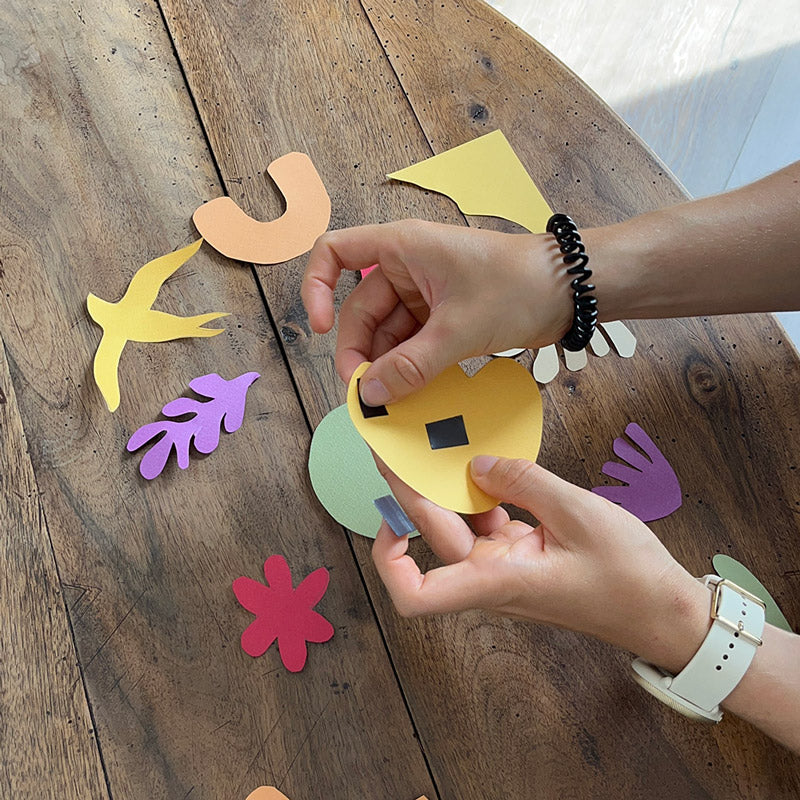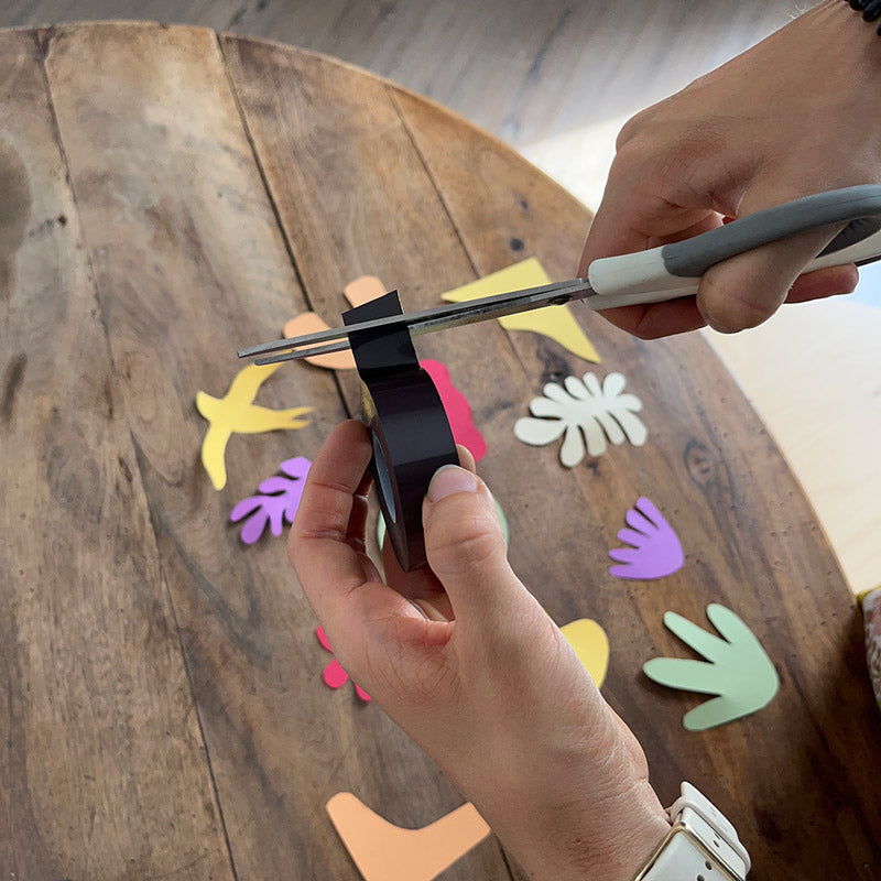 Glückwunsch ! Es ist Ihnen gelungen, Ihr eigenes magnetisches Werk aus ausgeschnittenem Papier zu schaffen, inspiriert vom visionären Künstler Henri Matisse. Dieses DIY-Projekt ermöglichte es Ihnen, die Schnitttechniken, leuchtenden Farben und die dynamische Ästhetik zu erkunden, die den Stil von Matisse charakterisieren.