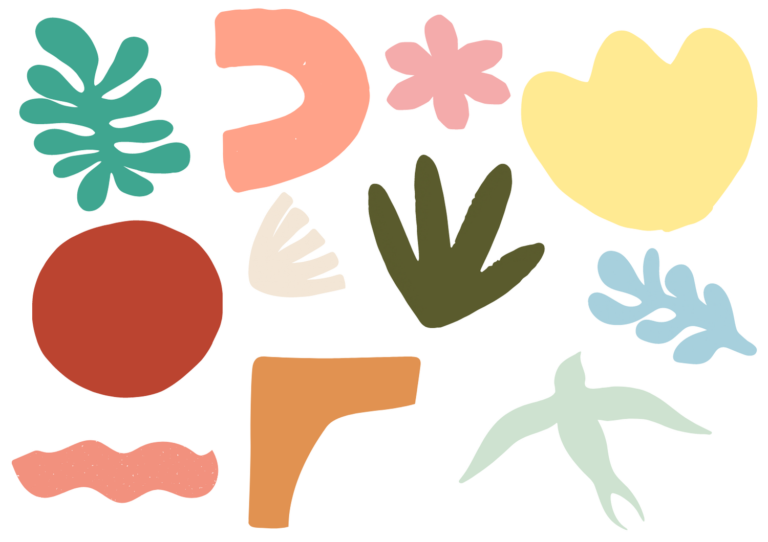 - Formen inspiriert von der Arbeit Papiers Découpés von Henri Matisse zum kostenlosen Download hier .