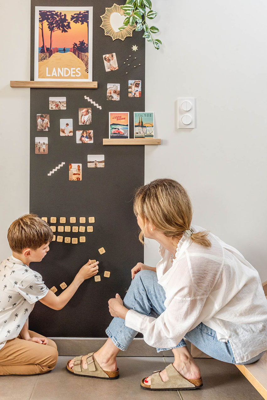 J’aime mélanger, mixer les styles, j’adore le contemporain mais tellement le charme de l’ancien. En général j’ai les idées et mon mari les exécute car je ne suis vraiment pas douée en bricolage.