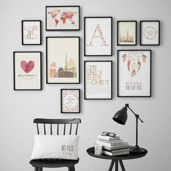 Prenez le parti de consacrer tout un pan de mur à vos photos. Vous pouvez les placer de façon anarchique pour un rendu original et totalement personnalisé. Mais vous pouvez également les placer de manière ordonnée. À vous de choisir.