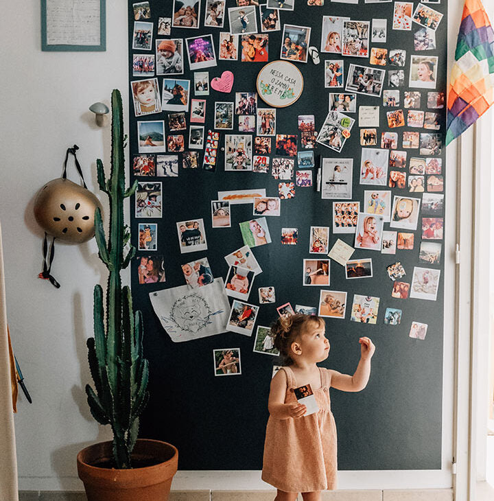Cuando descubrieron Ferflex® en 2019, su papel pintado magnético les cautivó inmediatamente. Estaban encantados con la idea de añadir una pared fotográfica magnética en la entrada de su apartamento. Eligieron colocar dos tiras de papel tapiz una al lado de la otra para crear un gran espacio de exhibición, perfecto para magnetizar fotografías de su familia brasileña.