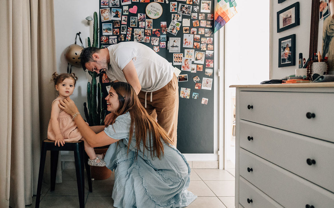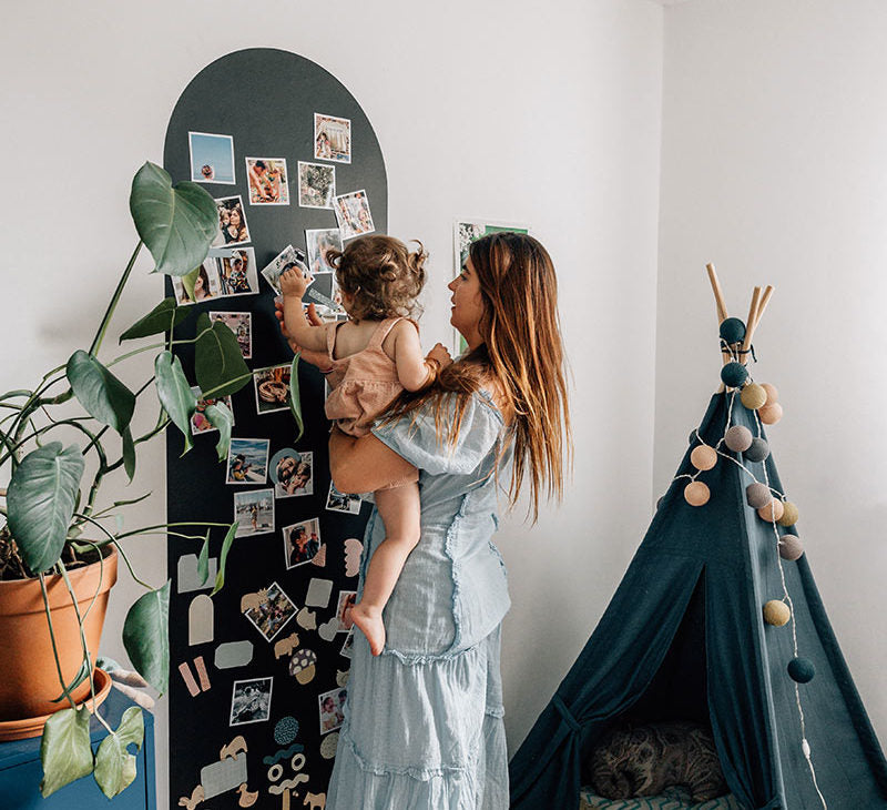 Con la llegada de Filippa quisieron crear un espacio cálido y divertido para ella. El dormitorio de Pippa es un lugar donde se unen creatividad y funcionalidad, gracias a los productos Ferflex®. Instalaron papel tapiz magnético en su habitación, lo que le permitió a Pipa jugar y explorar mientras decoraba su espacio con fotografías y sus propias creaciones.