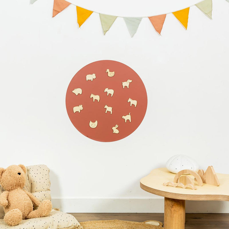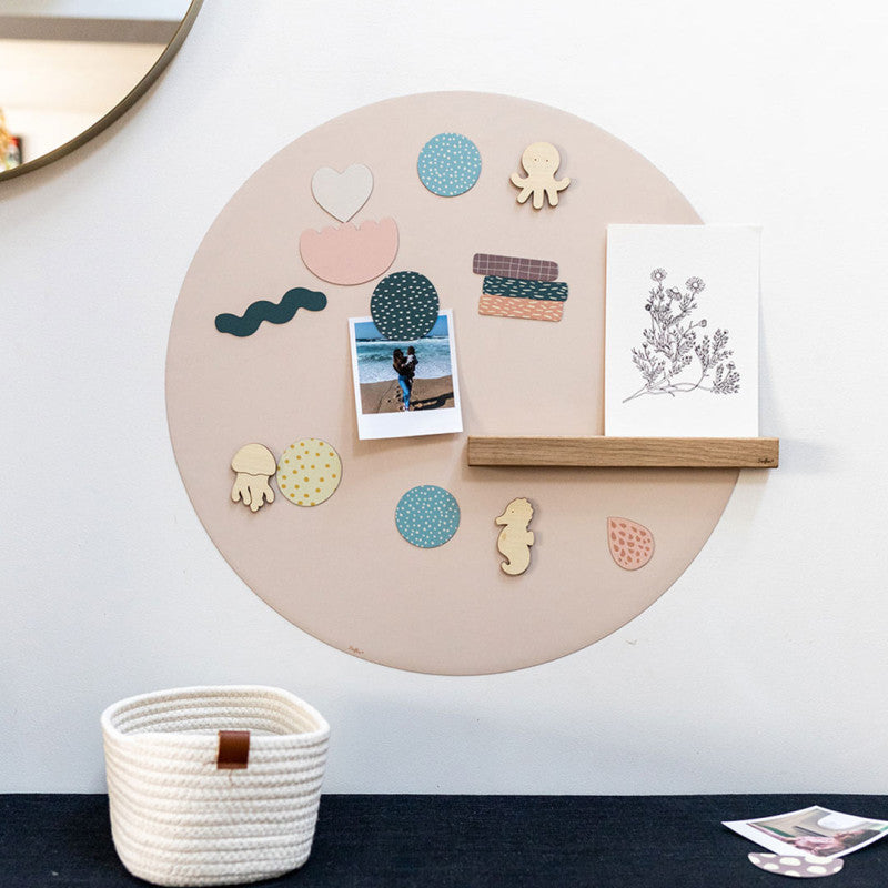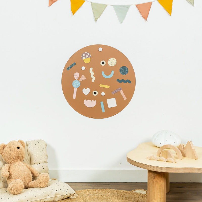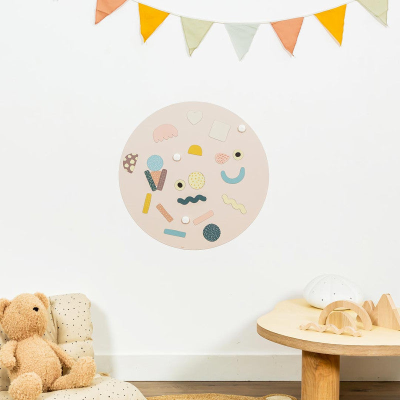 Pizarra magnética redonda de colores.