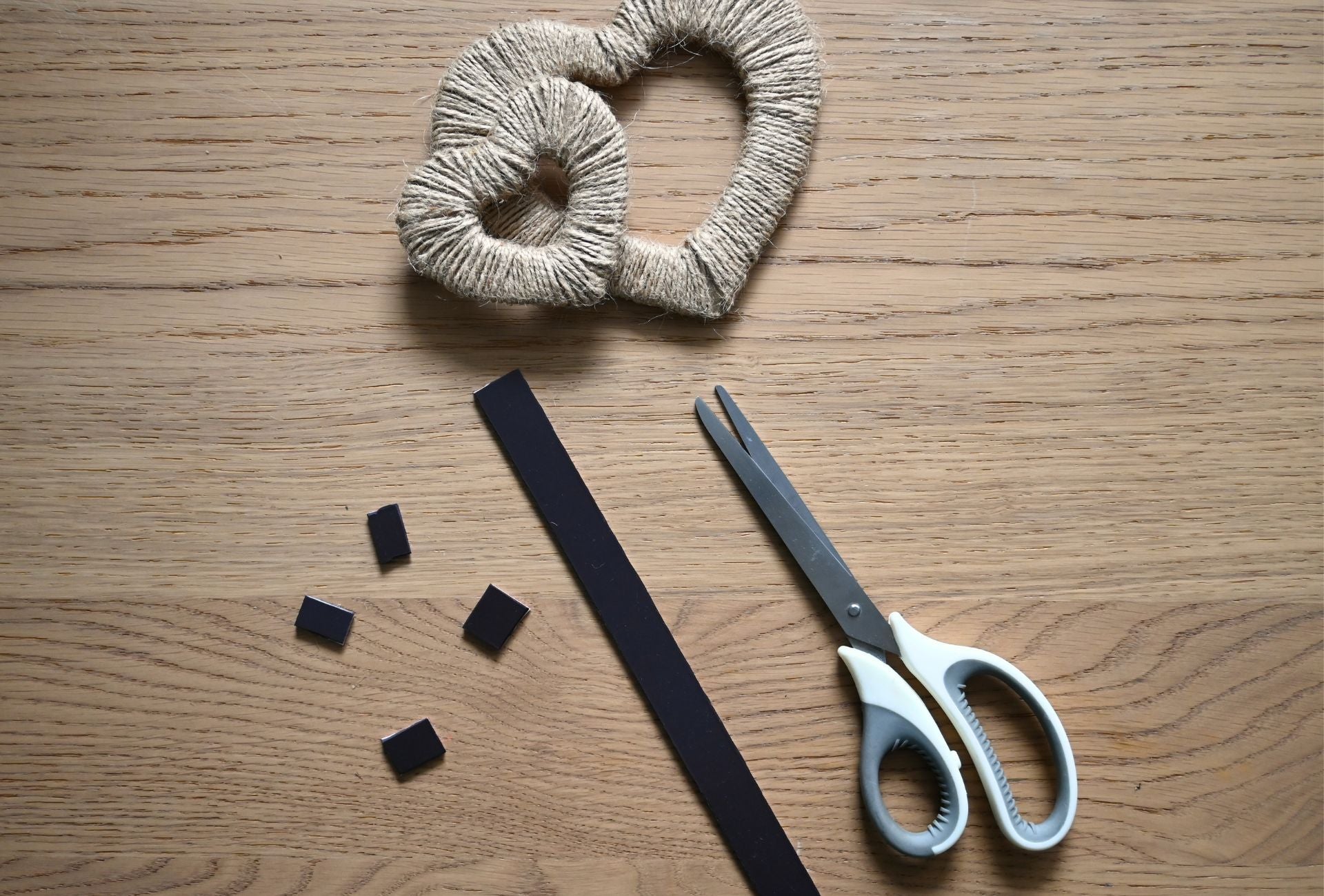 Découpez maintenant un bout de la ficelle de jute et commencez à enrouler la forme de manière à ce que la ficelle soit bien serrée autour du carton.
