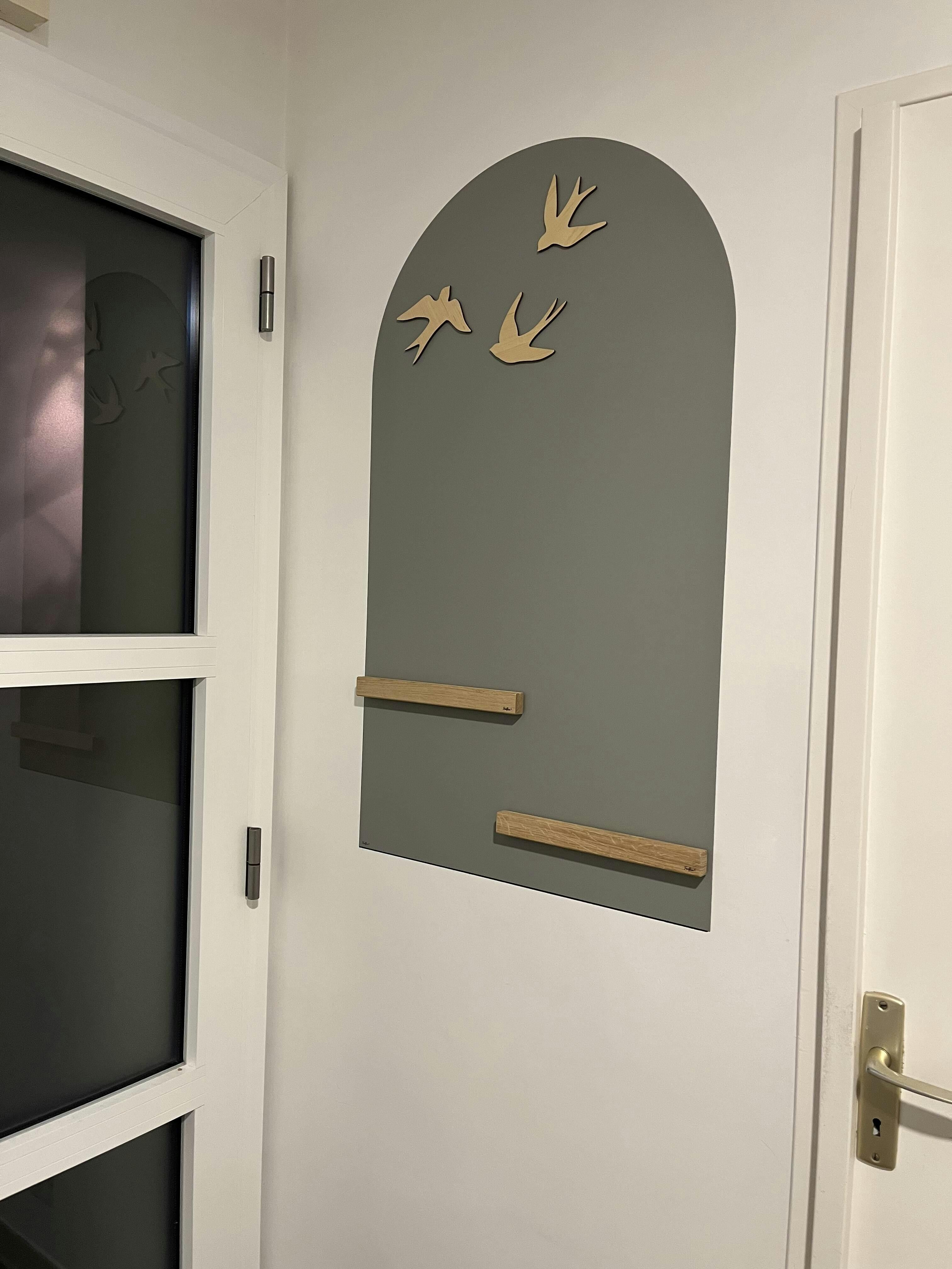 Arche commandée pour mon fils de 20 mois, il adore et passe beaucoup de temps à jouer avec ses magnets. De plus, l’installation est vraiment rapide et la qualité est parfaite. Attention, si le mur a quelques défauts, ils peuvent rapidement se voir en relief sous l’adhésif.