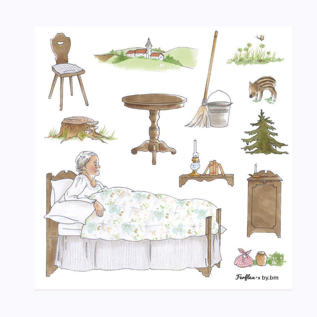 • des décors animaliers et paysagers (buissons, oiseaux, lapins, fleur, hérisson...)